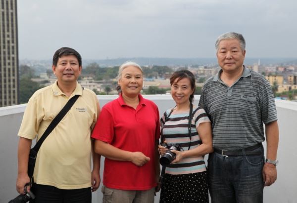 庞璐参赞及夫人(左一,左二)与摄影小组成员合影