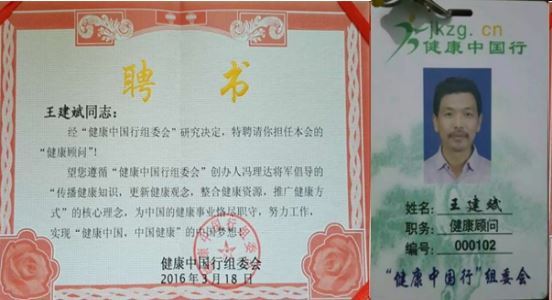 2016年3月,王建斌被“健康中国行组委会”聘为“健康顾问”。