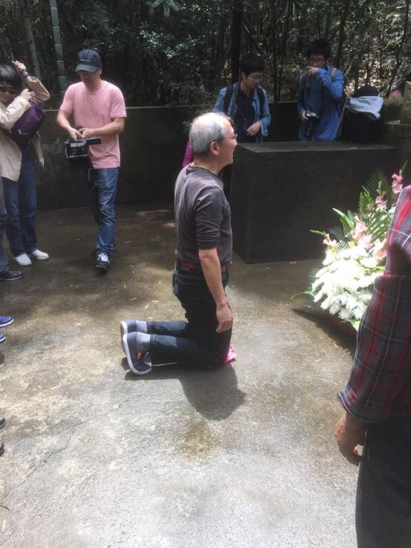 11时18分,小沙庙桥社区陈家村,三毛姐弟四代人来拜祭三毛爷爷墓地。分别来自台湾地区和澳大利亚。陈田心已经78岁高龄,仍然行跪拜大礼。