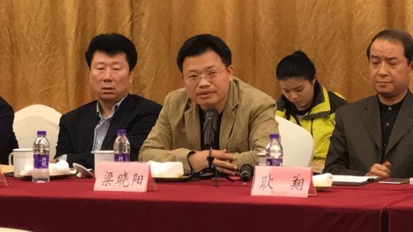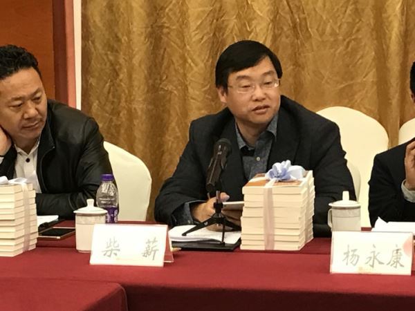 研讨会现场,浙江省散文学会会长陆春祥主持会议。