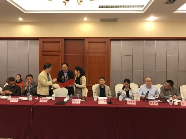 三毛组委会代表与上海文汇出版社社长桂国强签订获奖作品