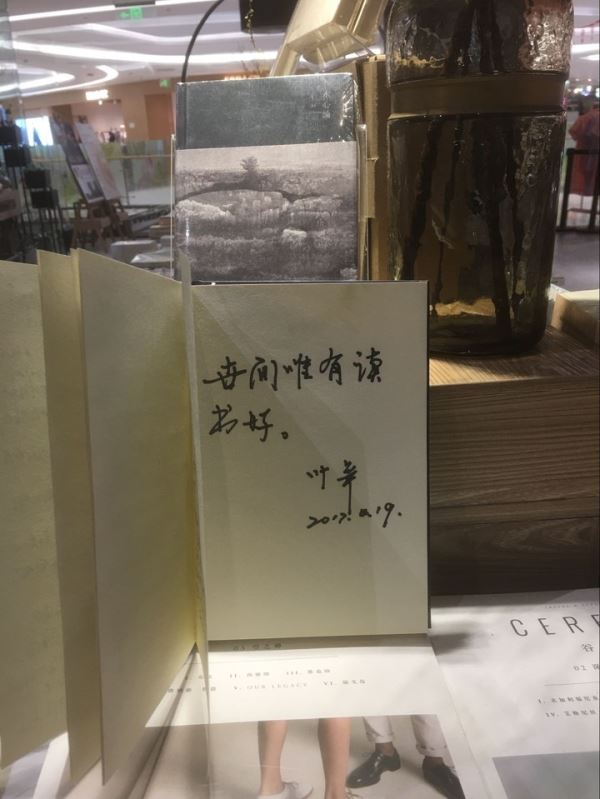 讲座结束后,叶辛和记者合影留念,并为浙江日报和浙江新闻客户端读者题词:“世间唯有读书好”。字体有力、遒劲,是这位饱经风霜的老人对自己人生的总结,也是他对广大读者的殷殷期待。书香定海,也已经成为继唱响定海、活力定海(户外运动)之后的又一大文化品牌,恰恰与叶老“世间唯有读书好”的理念不谋而合。