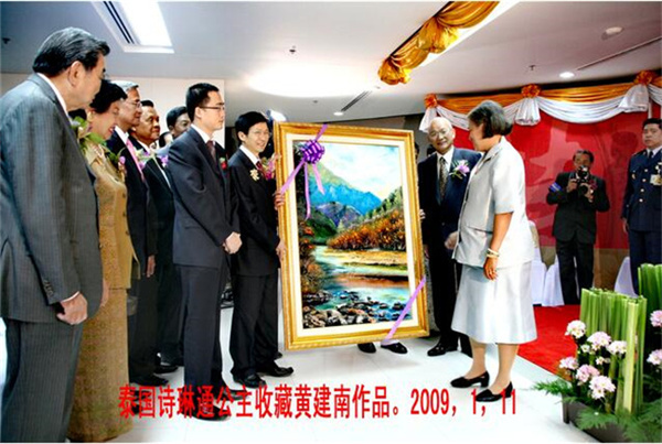 2008年12月2至8日,应邀前往曼谷举行有史以来泰国最高规格的个人画展,震动泰国上层社会。当时泰国重动乱,依然受到政府看守总理操哇叻的三次接见,还被邀请出席泰国皇国宴并与国皇御林军列队留影,其间有近二十幅油画作品被诗琳通公主、外交部及其各上层团体会馆收藏。