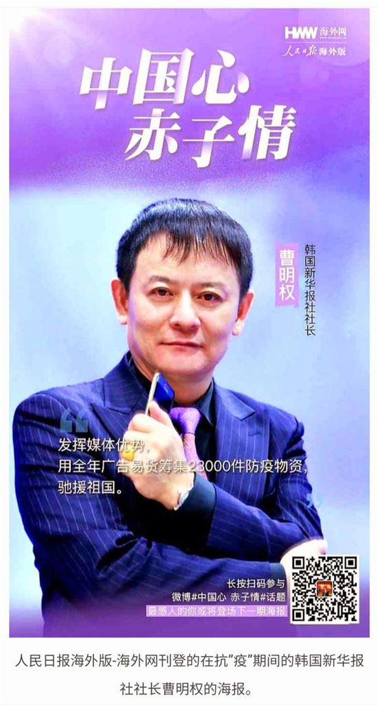 而旅韩韩国华人华侨都知道,他是首尔华人华侨中国和平统一促进会的创会会长。他更是纪念中国改革开放40周年模范人物人民文艺报上榜先锋。他,就是集荣誉于一身的海外华文媒体的杰出代表——曹明权。