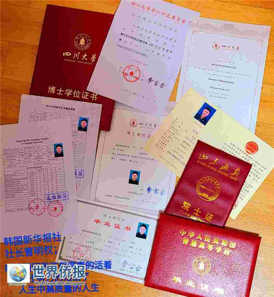 世界侨报讯|(特约记者 李茂娥)有人说他是大器晚成,也有人说他是疫情下“憋出来”的博士生。他更是韩国华人华侨当中最值得称赞的佼佼者。2021年年底,他历经六年多的努力拼搏,终于拿到了自己梦魅以求的中国四川大学的博士毕业证,为自己的学海生涯画上了圆满的句号。
