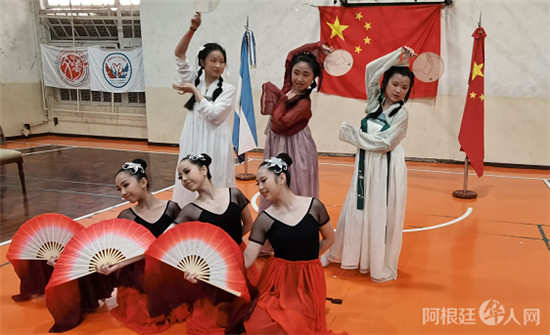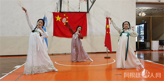 阿根廷华文教育基金会静雅艺术培训中心成员表演舞蹈《万僵》和古风扇舞《西楼别序》。