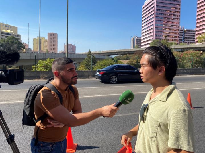 (葡萄牙当地媒体对个别抗议者进行采访)