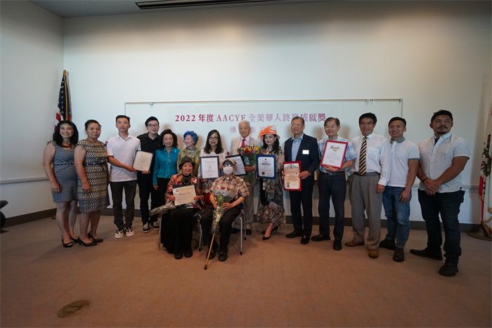 蒙特利公园市(2022年9月1日)–南加州文化名人刘冰、华裔参政先锋黄赵企晨于9月1日下午在蒙特利公园市市立图书馆大厅内分别获颁“2022年度中华文化海外传承终身成就奖”;“2022年度公共事务及华人社区服务终身成就奖”,并接受了近百位南加州华裔社区知名人士的现场祝贺。主办机构同时宣布知名书法家、书法理论家亓汉友获颁“2022年度中国文化艺术杰出成就奖”。圣盖博市华裔市长丁言愉、嘉伟学区教育委员任子安(Andy Yam)出席了当天的颁奖典礼并致辞向获奖者表示祝贺。
