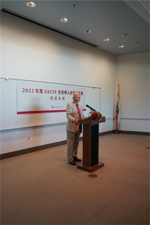 主办机构全美中华青年联合会的会长任向东在致辞中表示,“本会15年前设立了“全美十大华人杰出青年”以及后来的“全美30岁以下华人青年精英”等全美范围的年度评选。同时,为了感谢在关心华裔新生代成长、致力于中华文化海外传承、积极回馈华人社区等方面持续做出杰出成就的长辈和各界精英,为华裔新生代和留学生树立楷模,并铭记他们的贡献。在每年的亚太裔文化传承月及移民月期间、联合英文《洛杉矶邮报》共同评选出年度“终身成就奖”和“杰出艺术成就奖”等,这些年度奖项各有其严格的评选标准以及每年总数仅3到5位获奖者的名额限制,每个奖项只有1名获奖者。
