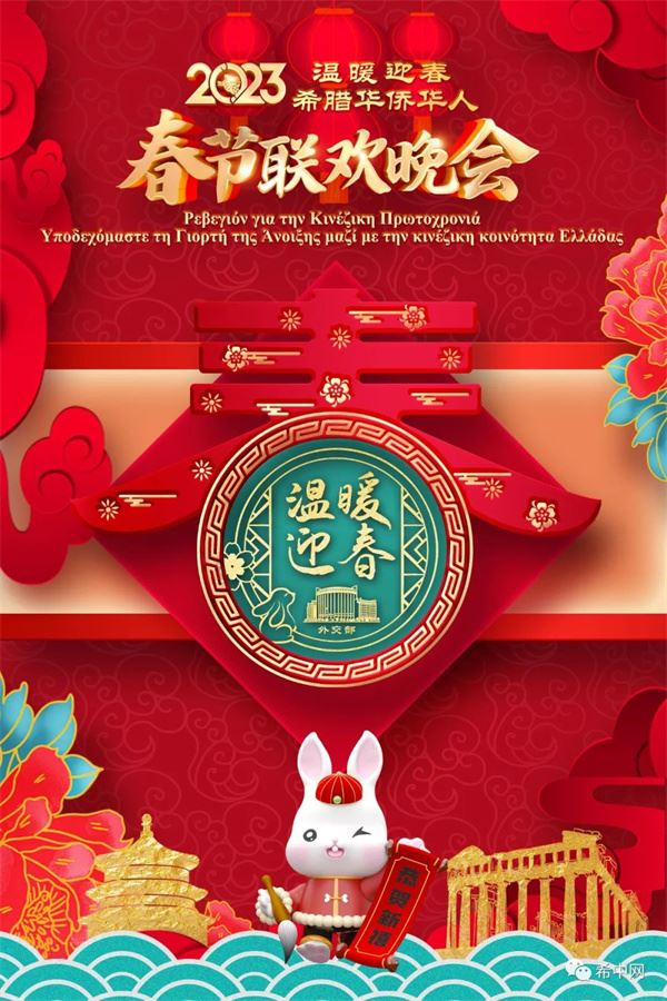 值此兔年新春来临之际,由中国驻希腊使馆、雅典中国文化中心、比雷埃夫斯市政府和阿提卡省政府领衔主办,各大旅希华人侨团联合主办的2023年“温暖迎春”希腊华侨华人春节联欢晚会将于元月15日周日,在比雷埃夫斯市政剧院隆重举行。