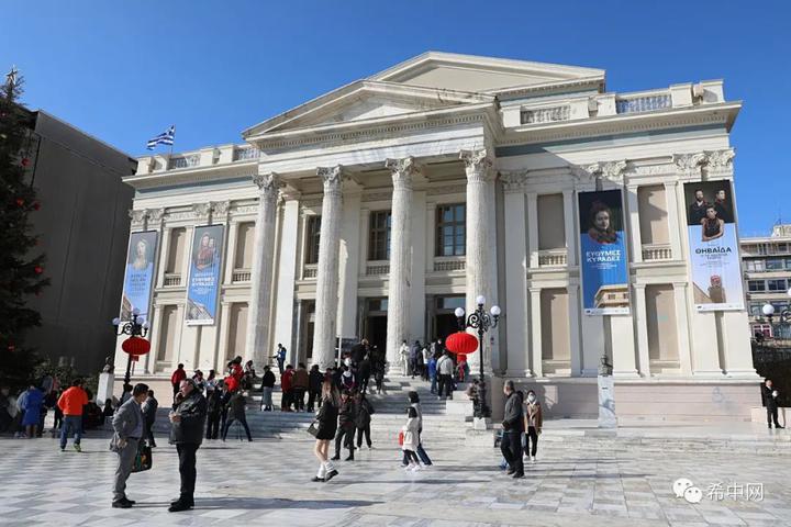 当天,拥有150多年历史的比雷埃夫斯市政剧院,在红灯笼和中国结的装扮下,显得年味十足,格外红火。