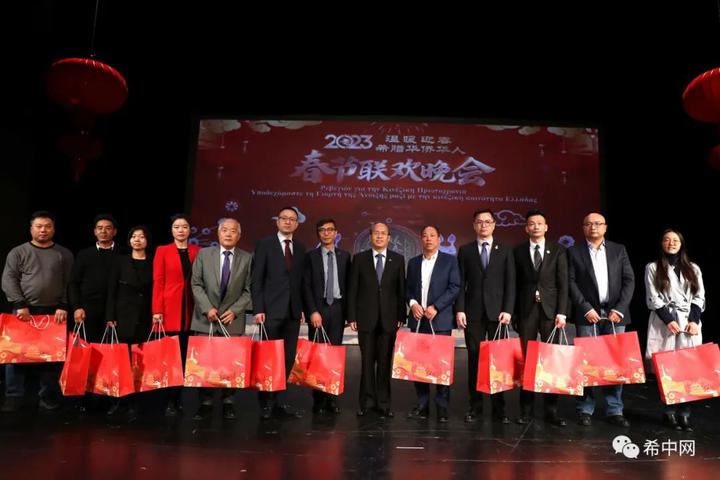 中国驻希腊大使肖军正在晚会上发表新春致辞,他表示,在过去的一年里,中希两国在各个领域的合作都取得了重要的成就。关山初度尘未洗,策马扬鞭再奋蹄。未来,中希关系将迎来更好的发展,中希两国人民的友谊也将更加友好和紧密,他代表中国驻希腊使馆衷心地祝愿祖国繁荣昌盛,全世界各族人民新春快乐、所得皆所愿。随后,肖大使向各侨团代表发放春节礼包,与旅希侨胞共庆新春的到来。
