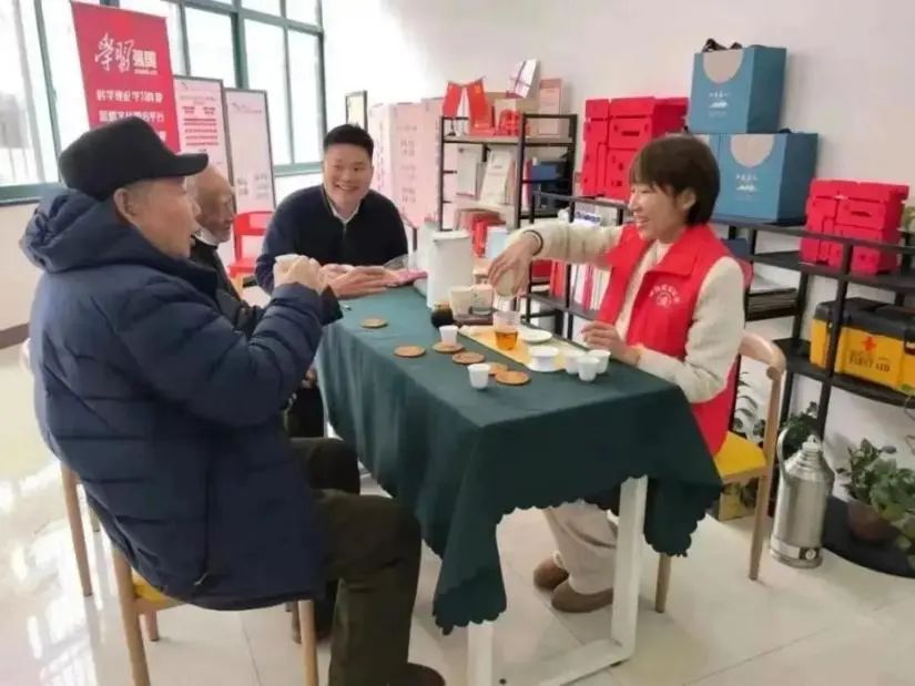 无锡市华侨文化交流基地--荣巷书社学雷锋志愿者服务团队深入社区开展活动,向居民传播茶文化、酒文化等中华优秀传统文化,增强居民文化自信。