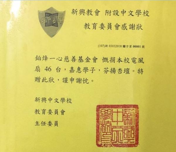 今年暑假期间新兴学校家长会的洪国益先生与联系铂烽一心慈善基金并说明了情况,为了给孩子们一个清凉的学习环境,在实地考察后铂烽一心慈善基金与中国行基金会,捐赠并安装了全新的白板和风扇,让孩子们从今年夏天开始不再感觉炎热。