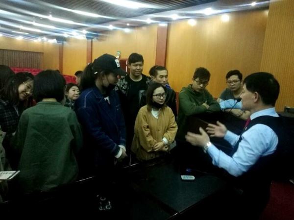 河北美术学院传媒学院的学生们讲座结束后与曹明权社长在交流与交谈中。