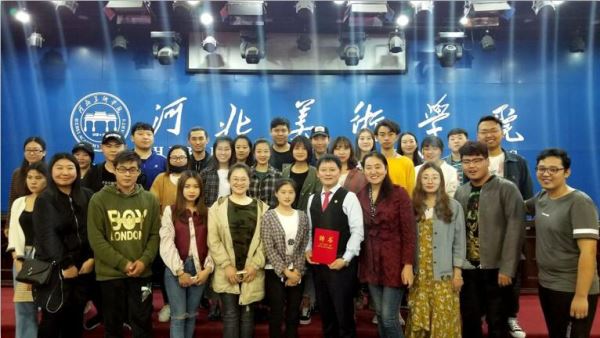 河北美术学院传媒学院的部分学生们在讲座结束后与曹明权社长共同合影留念。