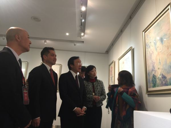 其后,澳门特区政府社会文化司长谭俊荣博士、中国驻葡萄牙大使馆代表徐志达、澳门驻里斯本经济贸易办事处主任柯天莲主任、澳门特区政府文化局局長穆欣欣、澳门美术协会会长陆曦先生应邀出席剪彩仪式。