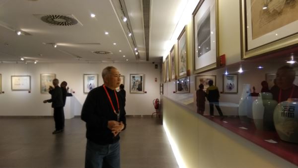 澳门美术协会会长陆曦先生致辞,会长表示,“澳门美术协会成立于1956年,现有会员400多人,是澳门规模最大、历史最悠久的美术团体之一。2016年获澳门特区政府颁发文化功绩勋章。创会63年来,本会一直秉承前辈们团结本地美术界,致力推动美学教育,提升美术水平的初心,兢兢业业拓展会务。回归以后,我们进一步加强了对内地以及香港、台湾、韩国等国家和地区的艺术交流,近年更成立了属下的青年美术协会,以及开拓了内地《彩虹路》美术支教的公益活动。今年是澳门特别行政区成立20周年的大庆之年,应主办单位之邀,我们带来了各艺龄段会员的30件美术作品,于大洋彼岸美丽的的葡萄牙里斯本亮相,以呈现艺术家们新近的艺术面貌,借此向同道及观众讨教,请朋友们多提宝贵意见。”
