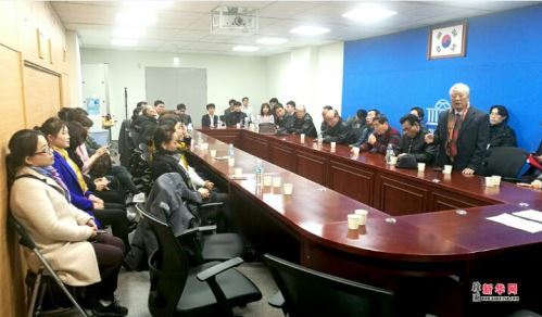 6日下午14时整,韩国全国韩籍中国同胞总联合会全体会长团干部们,以及韩国新华报、世界侨报、韩国侨报和中外通讯社等联合采访团,在韩国国会议事堂第一小会议室内,与韩国最大在野党--共同民主党最高委员、国会议员全海澈、以及国会议员黄熙等议员出席的座谈会上,曹明权总会长代表韩国全国韩籍中国同胞及韩国华文媒体首先做了发言,曹明权在发言中明确表示,广大在韩的中国同胞们坚决反对安装萨德、更反对战争,我们热爱和平但也不支持中国某些过激的爱国者无中生有和过激的不良行为等。