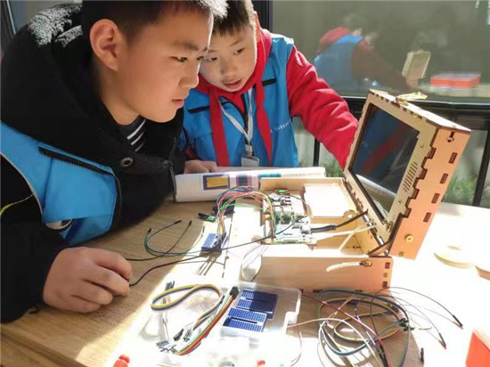 在2月份的冬令营里,学校以人类登陆火星为背景,开设了创客机器人、创意盒子、无人机等课程,引导孩子们解决人类登陆火星可能会遇到的种种困难。