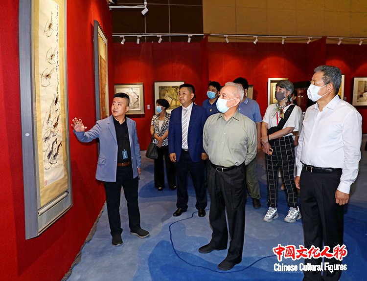 十二届全国政协副主席、全国工商联原主席、国家电子政务专家委员会主任王钦敏一行在国际画廊邀请展区参观齐白石国画作品
