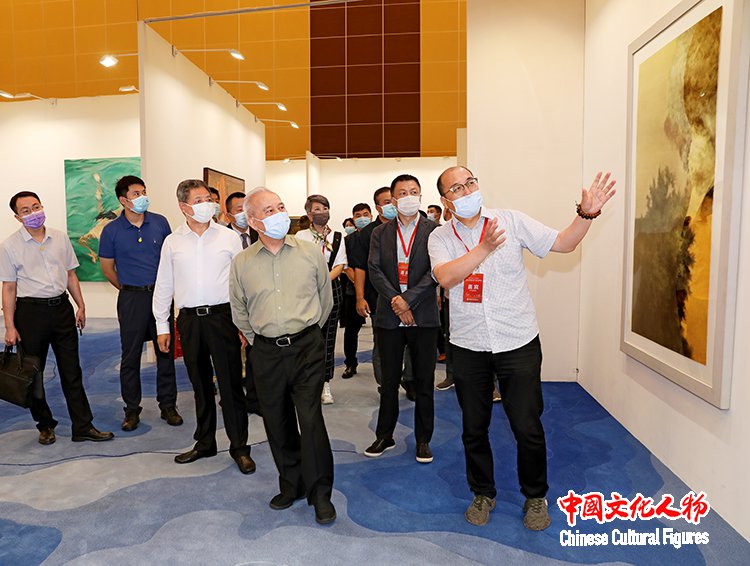 十二届全国政协副主席、全国工商联原主席、国家电子政务专家委员会主任王钦敏在全国工商联副主席李兆前,海南省副省长王路,国家文物局原局长刘玉珠,全国人大代表、中国民营文化产业商会会长、中国博物馆协会非国有博物馆专业委员会主任、大唐西市集团董事局主席吕建中等领导、嘉宾陪同下参观国际画廊邀请展