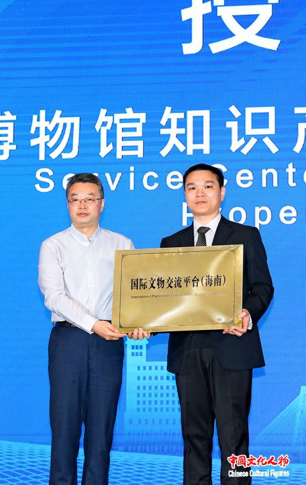 中国文物交流中心主任谭平为“国际文物交流平台(海南)”授牌