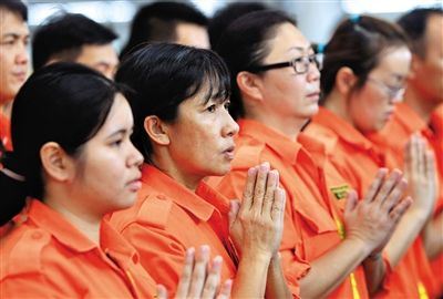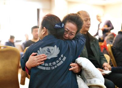 昨日,丽都饭店,台湾佛教慈济基金会的志愿者正在安抚家属。新京报记者 周岗峰 摄