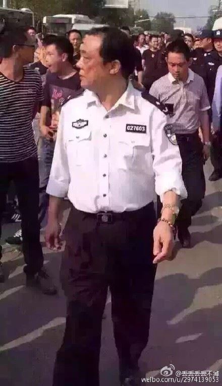 今天(10月23日)午间,有网友曝出昨日汉正街商户聚集抗议物流垄断,武汉市~口区公安局副局长高明德在现场执法过程中,被人发现手戴佛珠和金表,后经提醒,他迅速将金表摘下。眼尖者称其佩戴的是劳力士金表,价值不菲。当地警方回复弧度称,这是一块价值1200元的手表,已经戴了10年,而高明德只是正常履行职责,没有什么违规行为。