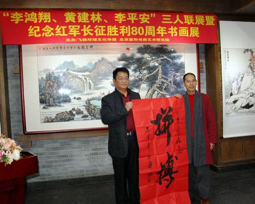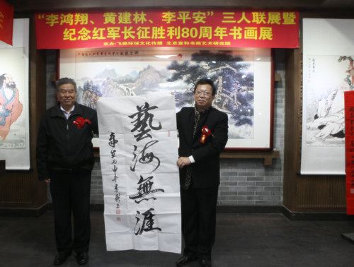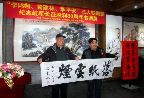 环球文化艺术网(记者:顾云平 摄影:张飞)为继承和发扬老一辈无产阶级革命家的光荣传统,弘扬长征精神和爱国主义精神,激发全社会爱国主义热情。由北京宣和书画艺术研究院、健康导报、中国公益在线、宣和艺术馆、环球文化艺术网主办;飞驰环球(北京)文化传播有限公司承办;中国明星书画院上海分院、宣和网协办的“李鸿翔、黄建林、李平安三人联展暨纪念中国工农红军长征胜利80周年书画作品展”在北京隆重开幕。
