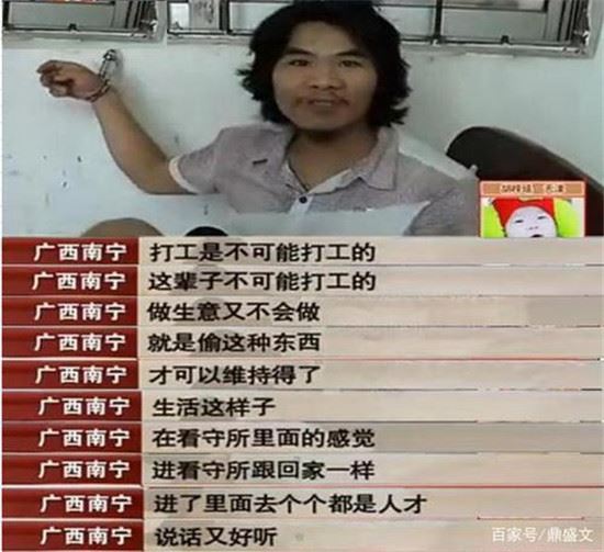“打工是不可能打工的,这辈子不可能打工的。” “在家里面一个人很无聊,都没有朋友、女朋友玩 ,进了里面(指看守所)去个个都是人才,说话又好听,我超喜欢在里面。” “做生意又不会做,就是偷这种东西,才可能维持得了,生活这样子。”这些被认为离经叛道的表述却被一些网友奉为“经典语录”,在社交网络流传。
