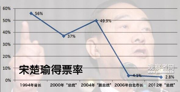 宋楚瑜历次选举得票率,个人光环早已不在