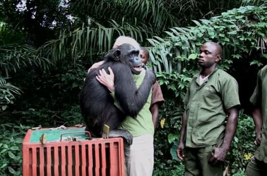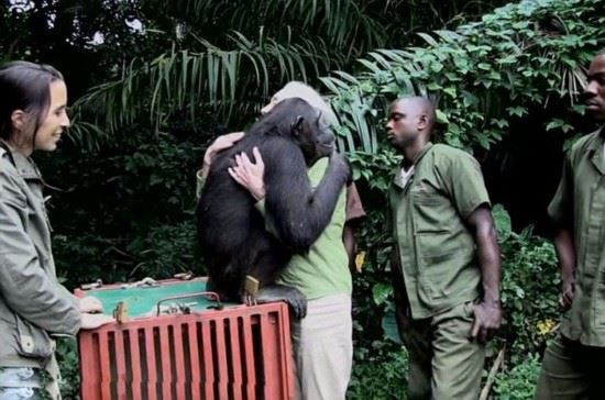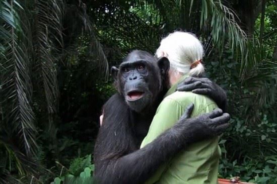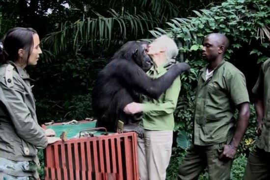 珍·古道尔是英国著名的野生动物学家,其长期致力于黑猩猩的野外研究。近日,珍与一只名叫“伍德“(Wounda)的黑猩猩上演了温馨一幕。据英国《每日邮报》2月12日报道,刚果共和国的这只黑猩猩在珍所创办的黑猩猩康复中心接受了的精心治疗和照顾,痊愈后的它被送到更适合其生存的小岛生活。而在到达新家后,这只黑猩猩紧紧地拥抱着珍,似乎是为了表示感谢与不舍。