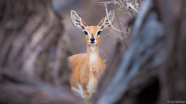 当拍摄野生动物时,尼尔表示其中最重要的一点就是必须要和专业的向导合作,他们能够读懂所拍摄动物目标的行为语言,并确保它们没有处于紧张状态。他说:“对我而言,能够让动物接受你的存在和拍摄非常重要。”照片是拍摄于南非马篷古布韦国家公园内的小岩羚