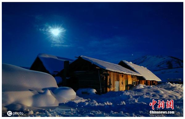 11月29日消息,冬天的喀纳斯湖和禾木村被白雪覆盖,宛如仙景。图片来源:ICphoto