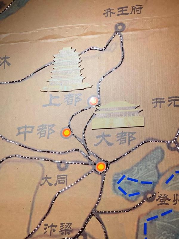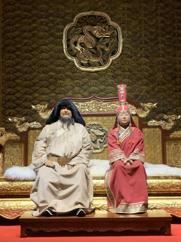 (一)序厅——元帝国辉煌。该厅以元世祖忽必烈汗塑像和元朝兴盛时期疆域图为主体,把元朝的兴盛辉煌展示给众人。