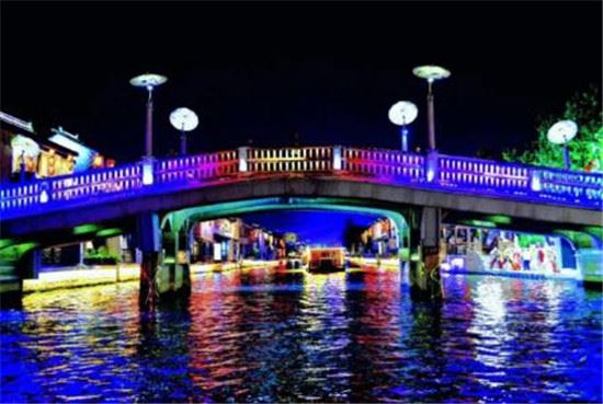 开幕式后实景表演《运河四季》璀璨开演,演出在清名桥区域
