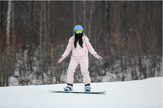 俄罗斯友人Tina体验单板滑雪。梁琪佳摄