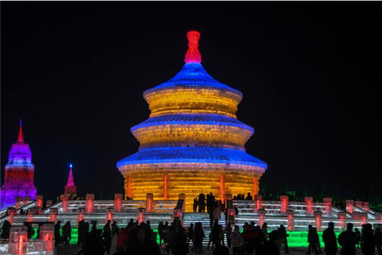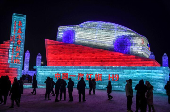 长春冰雪新天地中的冰雕雪雕。梁琪佳摄