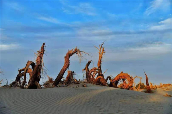 我所说的“野”,不是“野蛮”的“野”,而是回归人性本真的一种“野”。东汉许慎编著的《说文解字》里说:“野,郊外也。”巴楚县的总面积比省会城市乌鲁木齐全市的行政区域还要大。这里有沙漠、戈壁、雪山、草甸、雅丹地貌、平原水库,更有世界罕见的大面积胡杨林生长区,使人有“一入林中深似海,疑心世上无甲子”之慨。很多人疑心巴楚是江南的一块飞地,作为一名“江南人”,我在心底里暗自感叹:巴楚不但有江南“野旷天低树,江清月近人”的秀美,而且有塞上“大漠孤烟直、长河落日圆”的壮美。