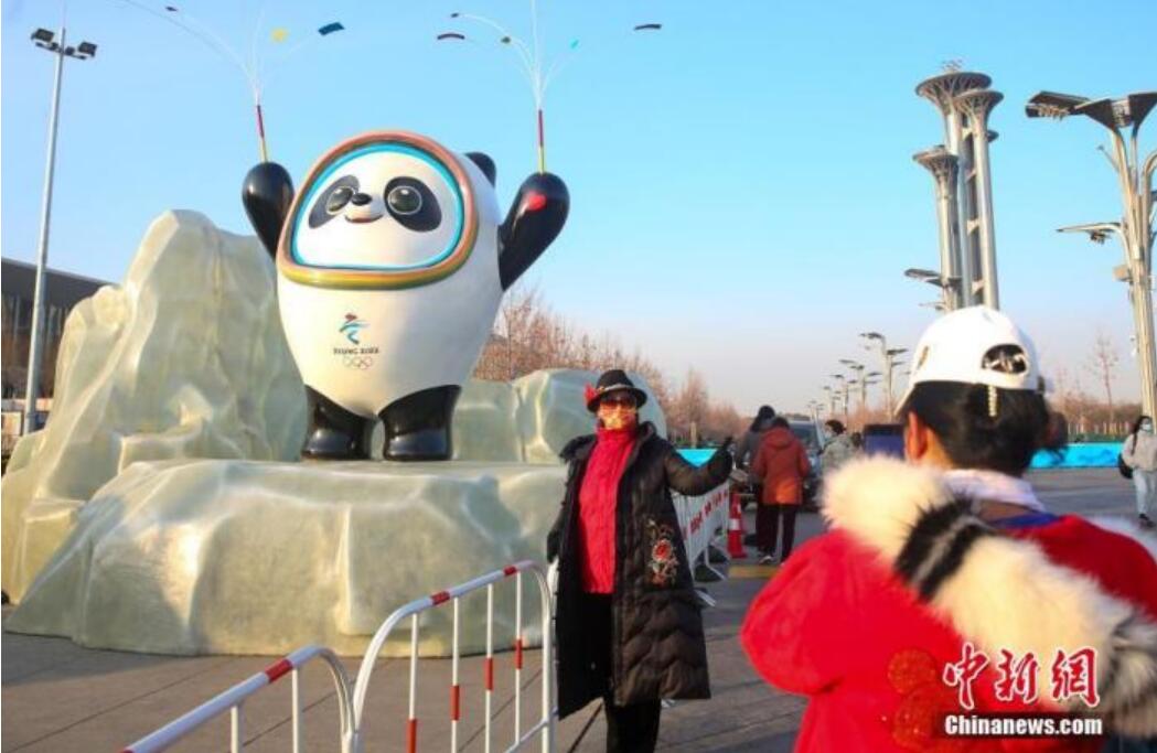 1月16日,北京大屯路,北京2022年冬奥会吉祥物“冰墩墩”吸引路过的市民拍照打卡。 中新社记者 易海菲 摄