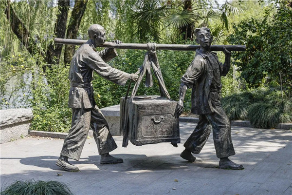 然而王朝变迁、朝代更迭,当初的繁华中心卖鱼桥码头,如今已变成运河边的一块牌坊,旁边的雕塑再现了旧日“帆樯卸泊,百货登市”之景。