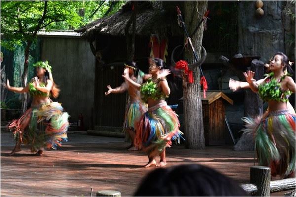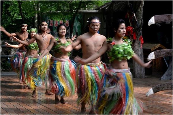 主持人热情风趣的教游客用野人的方式打招呼问候。