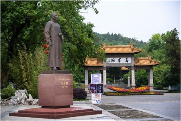 大门口这座雕像是近代善卷洞的大功者储南强,他在民国10年筹资整修善卷洞,凿通中洞与下洞的通道。民国19年开始整修水洞;民国23年11月,善卷洞举行了游览通车典礼,正式对游客开放。