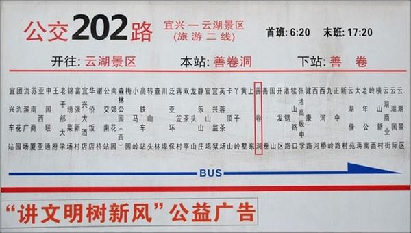 需要提醒的是非旅游旺季公交班次间隔的时间较长,大约半小时一班。当然也可以在市内乘坐宜兴到张渚镇的农村公交,下车后向前再走一段路,票价6元。