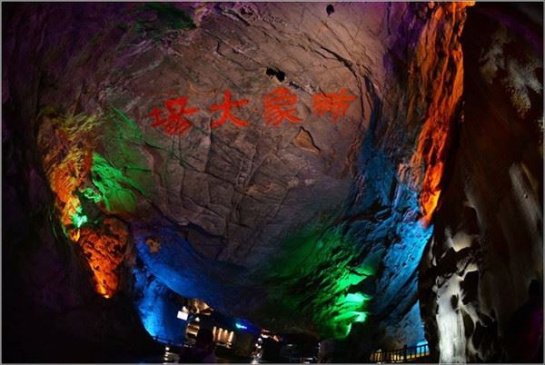 石厅两边是形似青狮、白象的巨石,故中洞又称“狮象大场”这四个大字由丹阳吕凤子题写。