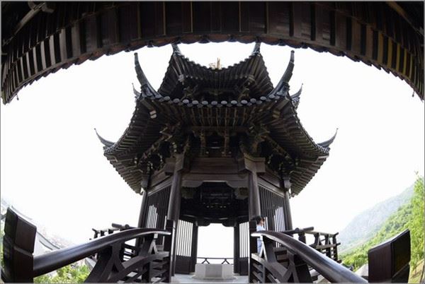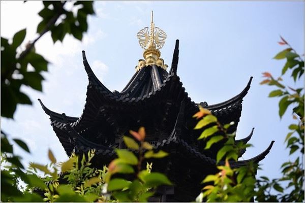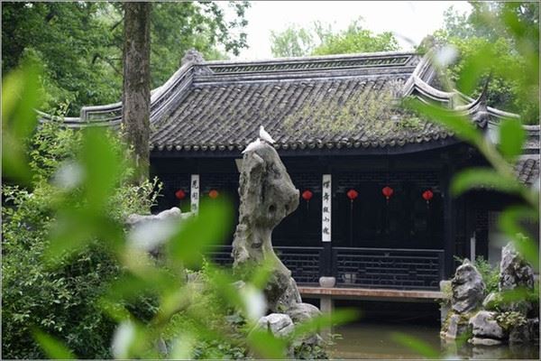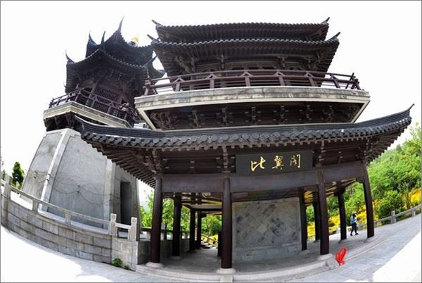 比翼阁建筑独特,亭阁连体,象征着梁祝美好的爱情。