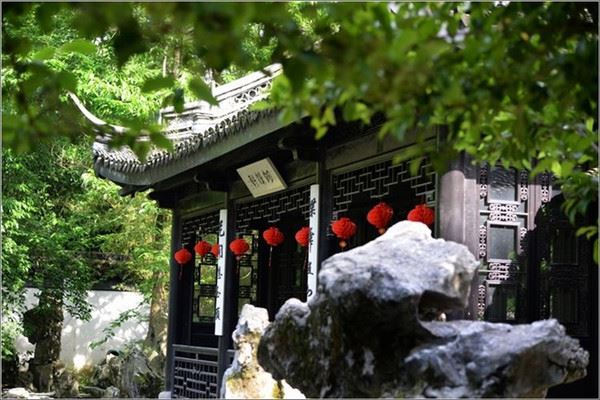这是景区主入口:“善卷洞”三个笔力遒劲的大字是著名的苏州左笔书法家费新我先生所题。门楼楹联是著名美术家黄养辉先生所题。