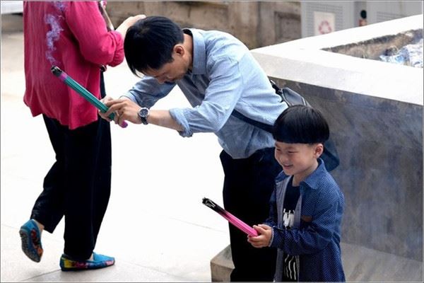 比起爸爸来,这小香客显然显得虔诚度数不够,只是充满了好奇。呵呵,我也不信这,好玩就行。