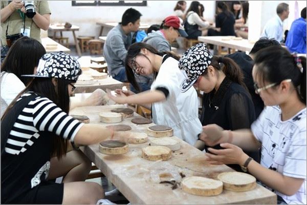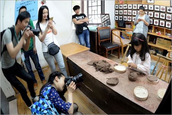 为了使游人更近距离的了解宜兴特产紫砂的制作过程,景区里特意设置了陶吧供游人体验,大朋友、小朋友玩的都挺欢!